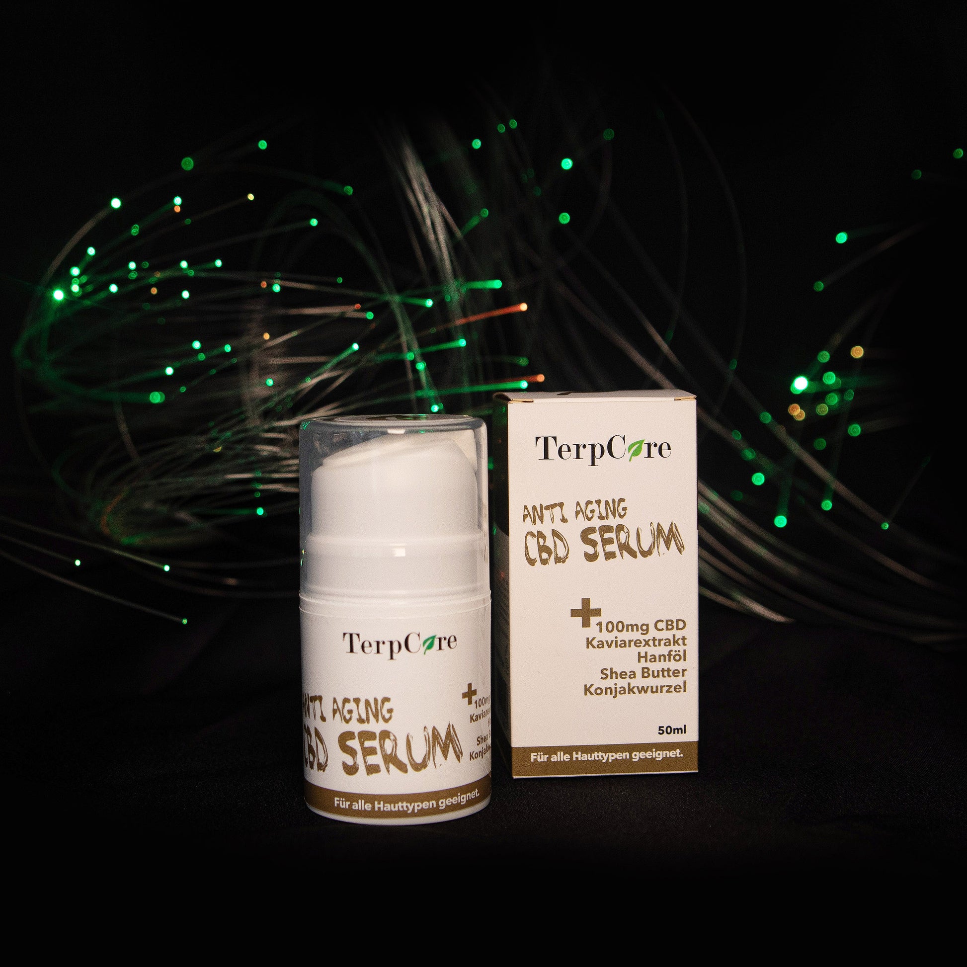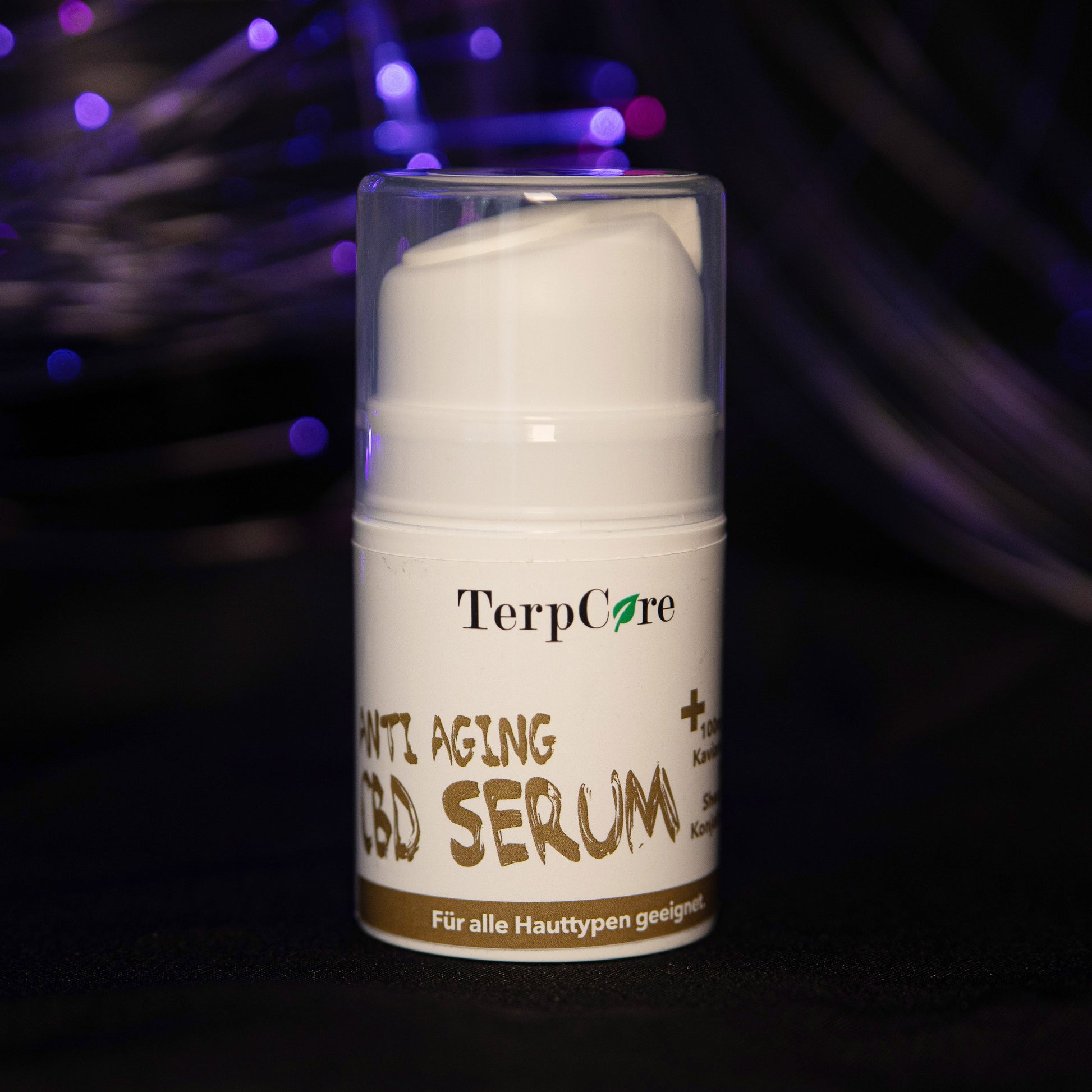 Unser TerpCare Anti Aging Serum (50ml Inhalt) überzeugt nicht nur durch die enthaltenen 100mg CBD welches die Hautalterung bremst. Zusätzlich kommen edles Kaviarextrakt, pflegende Shea-Butter, Grüntee-Extrakt und ein Extrakt der Konjakwurzel zum Einsatz. Alles Zutaten die nur ein Ziel haben: deine Haut zu erfrischen und dein Hautbild zu verjüngen.